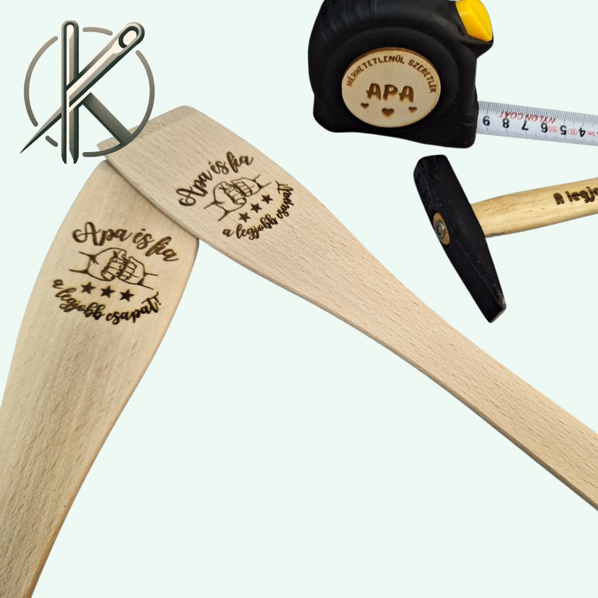 Egy fakanál, amely több mint egyszerű konyhai eszköz – ez az „Apa & Fia” gravírozott fakanál a közös főzések, a nevetések és az összetartozás szimbóluma.