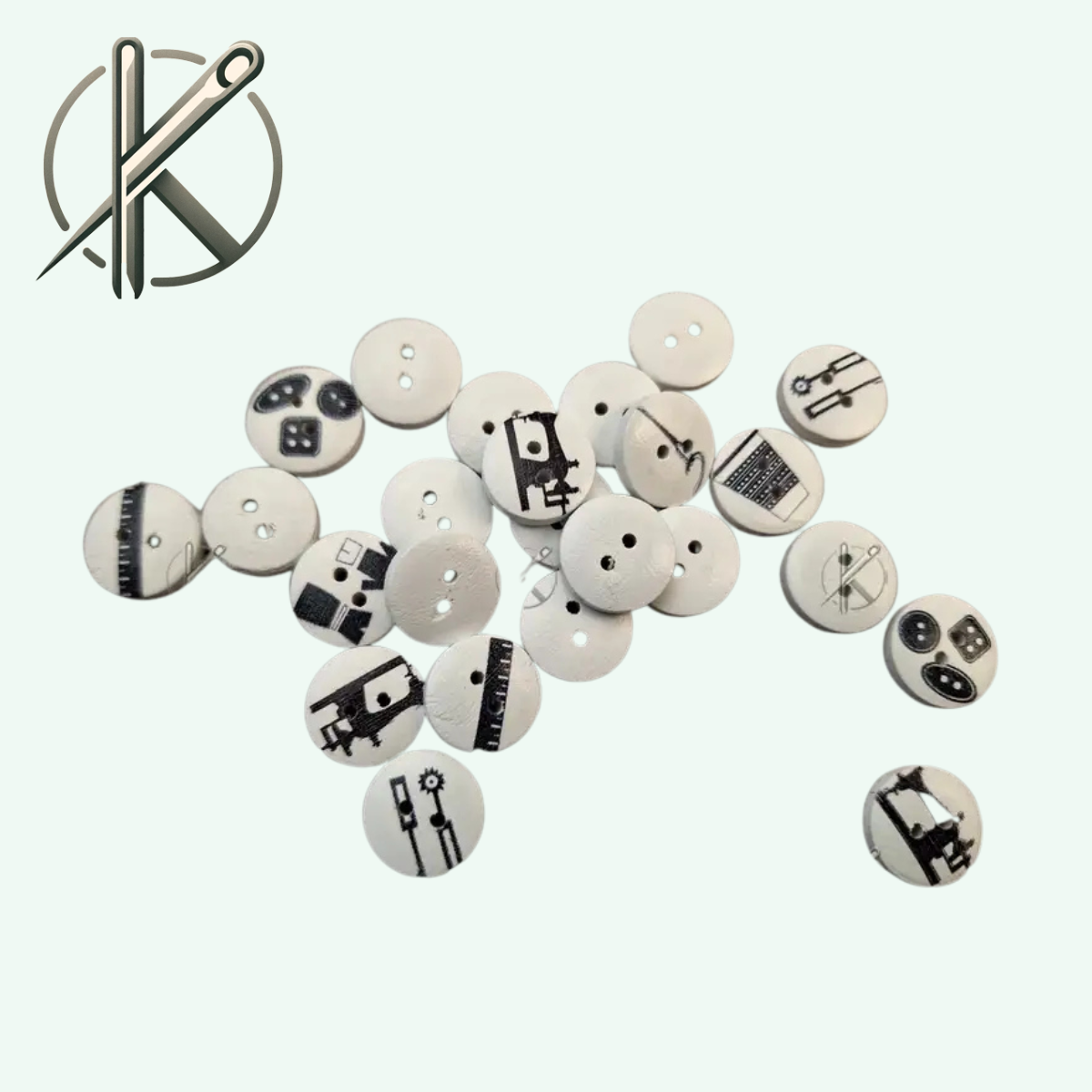 Ez az 1,5 cm átmérőjű fehér fa gomb apró, dekoratív varrós motívumokkal díszített, így különleges kiegészítője lehet kézműves és textilprojekteknek. Természetes faanyaga tartós, a finom mintázat pedig elegáns és játékos részletet ad ruházati cikkekhez, kiegészítőkhöz vagy dekorációkhoz.