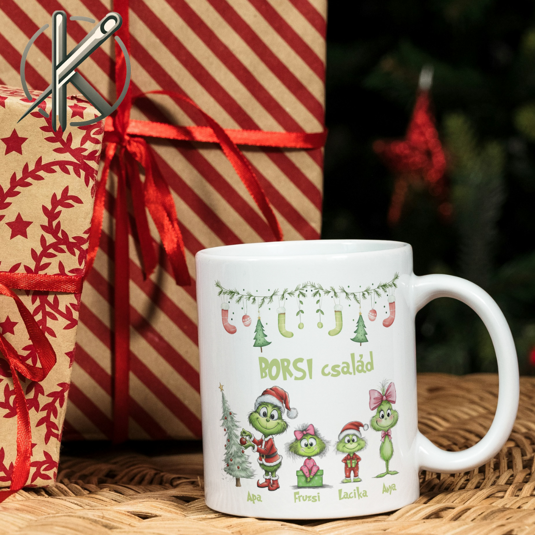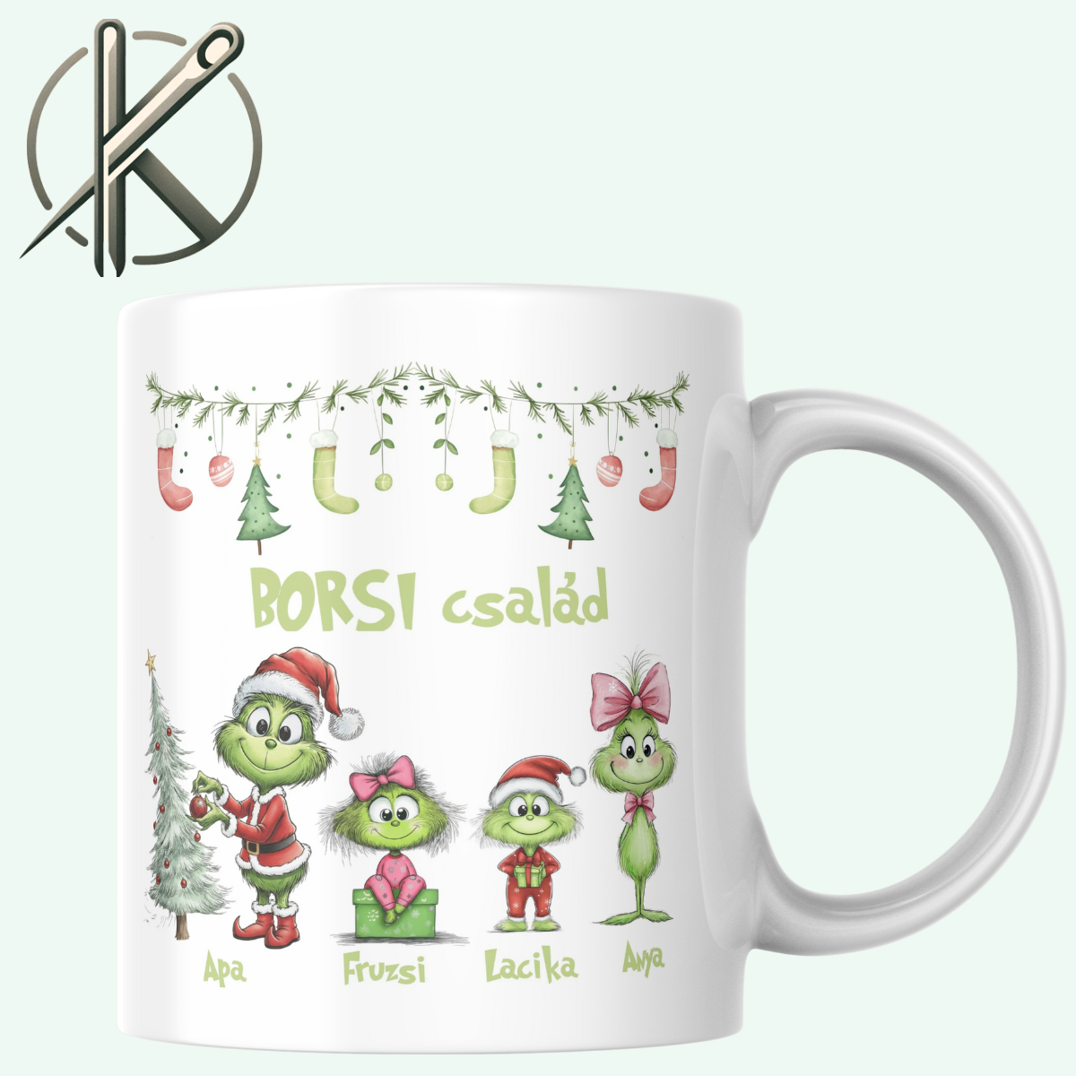 🎄 Saját tervezésű Grincs bögre – személyre szabható figurákkal és nevekkel! 🎁