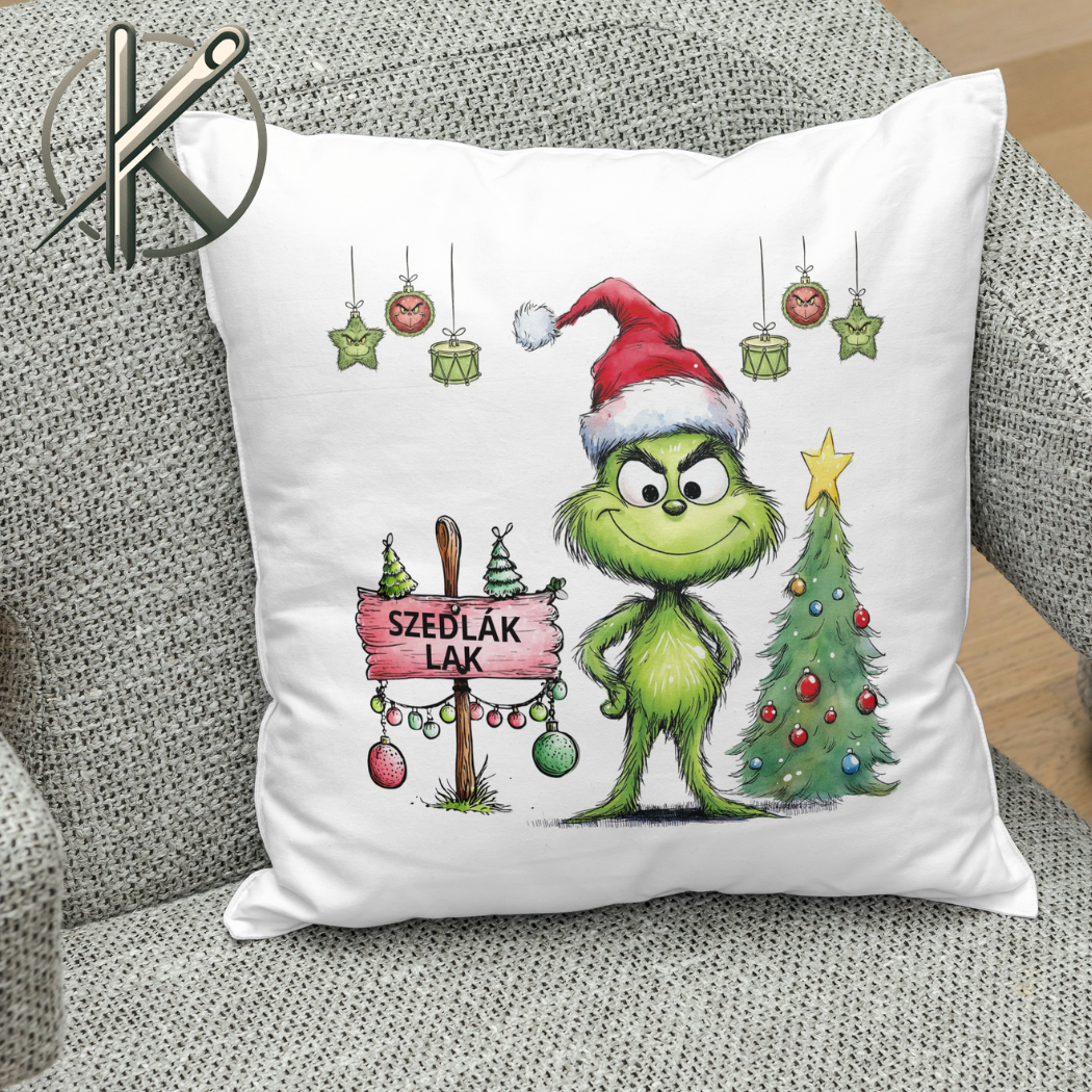 Tedd igazán különlegessé az ünnepi készülődést ezzel a vidám és szórakoztató Grincs párnával! A személyre szabható névvel és humoros grafikával ellátott párna tökéletes ajándék mindenkinek, aki szereti a karácsonyi mókát és egy csipetnyi Grincs-stílust az otthonába vinni.