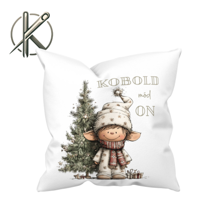 Ez a saját gyártású, kobold mintás díszpárna igazi különlegesség – mesés, ünnepi mintája vidámságot és melegséget visz minden otthonba.