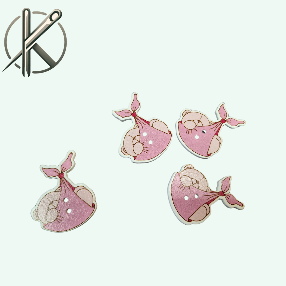 Bájos megjelenésű fa gomb, amely egy kislány macit ábrázol, akit a gólya hozott. Természetes fa alapanyagból készült, könnyű és kellemes tapintású. Ideális babaruhák, gyermekruházat és kézműves alkotások díszítésére.