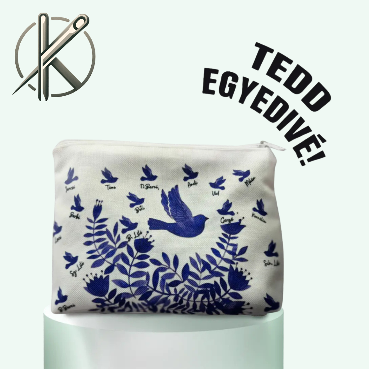 ✔ Egyedi dizájn – A neveket kis madarak formájában jelenítjük meg.